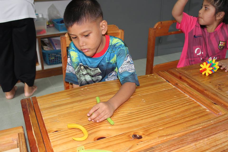 วันพฤหัสบดีที่ 19 พฤษภาคม 2559 เวลา 10.30 น. การจัดกิจกรรมการเรียนการสอนห้องสติปัญญา พัฒนาทักษะกล้ามเนื้อมัดเล็ก และทักษะทางวิชาการ ฝึกการเขียนตัวอักษรตามเส้นประ ปั้นดินน้ำมัน จับคู่รูปทรงเรขาคณิต การร้อยลูกปัด ศูนย์การศึกษาพิเศษ ประจำจังหวัดนครศรีธรรมราช |