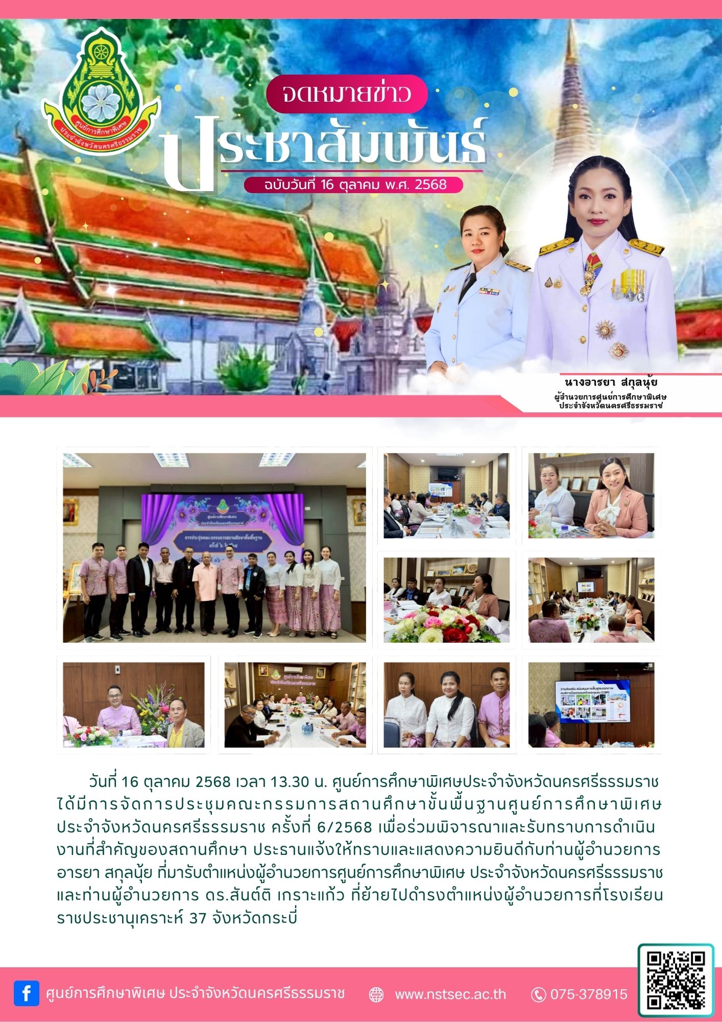 16-10-68 การประชุมคณะกรรมการสถานศึกษาขั้นพื้นฐานศูนย์การศึกษาพิเศษ ประจำจังหวัดนครศรีธรรมราช ครั้งที่ 6/2568